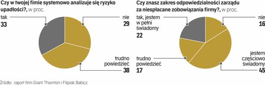 Zgodnie z przepisami prawa upadłościowego, gdy zaległości w regulowaniu wymagalnych zobowiązań pieniężnych przekraczające trzy miesiące, członkowie zarządu powinni złożyć wniosek o upadłość firmy. Tylko 22 proc. ankietowanych jest w pełni świadomych takich obowiązków.