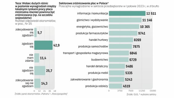 Sceptycy zwracają też uwagę na to, że regionalizacja płacy minimalnej otwierałaby pole do arbitrażu. Pracodawcy mogliby zatrudniać pracowników w tych regionach, gdzie płace są niższe, nawet jeśli świadczą usługi w całym kraju. Wymagałoby to skomplikowanego systemu kontroli. Z tej perspektywy patrząc, lepszym rozwiązaniem byłoby sektorowe zróżnicowanie płacy minimalnej. – Do tego potrzeba negocjacji płacowych na poziomie branżowym, a u nas nie ma ich nawet na poziomie zakładów pracy – zauważa prof. Joanna Tyrowicz z Uniwersytetu Warszawskiego i think tanku GRAPE.
