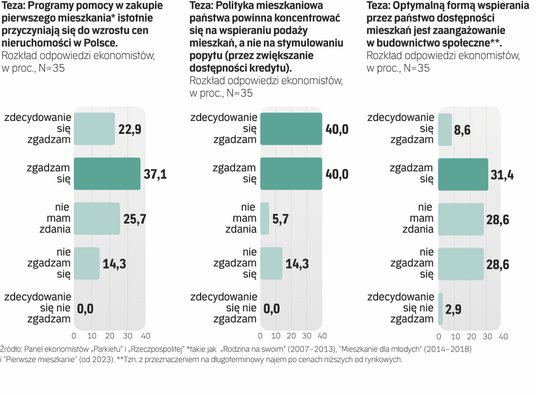 Z tezą, że funkcjonujące w Polsce niemal stale od 2007 r. rządowe programy wspierające dostępność mieszkań („Rodzina na swoim”, „Mieszkanie dla młodych”, a teraz „Pierwsze mieszkanie”, którego częścią jest „Bezpieczny kredyt”) przyczyniają się istotnie do wzrostu cen nieruchomości, zgodziło się 60 proc. z 35 panelistów, którzy wzięli udział w naszej sondzie. Przeciwnego zdania było tylko 14 proc. ankietowanych.