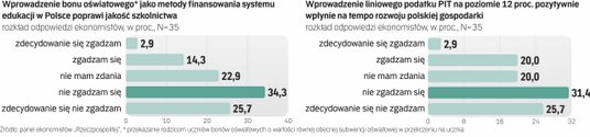 Co na to ekonomiści? Z tezą, że „wprowadzenie bonu oświatowego jako metody finansowania systemu edukacji w Polsce poprawi jakość szkolnictwa” zgodziło się zaledwie 17 proc. spośród 35 uczestników panelu eksperckiego „Rzeczpospolitej”, którzy wzięli udział w naszej sondzie dotyczącej kluczowych gospodarczych postulatów partii startujących w tegorocznych wyborach. Odmiennego zdania było 60 proc. ankietowanych, przy czym spora część z nich – niemal 25 proc. – jest zdecydowanie przeciwna temu postulatowi.