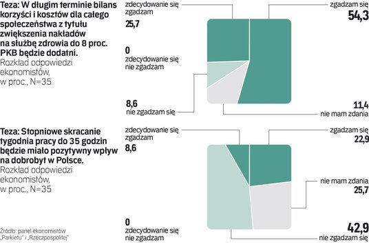 O ocenę tej propozycji Lewicy poprosiliśmy uczestników panelu ekonomistów „Rzeczpospolitej” w ramach sondy dotyczącej gospodarczych postulatów startujących w wyborach partii. Aż 80 proc. spośród 35 ankietowanych naukowców zgodziło się z tezą, że w długim terminie bilans korzyści i kosztów dla całego społeczeństwa z tytułu takiego zwiększenia nakładów na służbę zdrowia, jakie proponuje Lewica, będzie dodatni. Uczestnicy sondy zastrzegają często, że sam w sobie wzrost wydatków na służbę zdrowia nie rozwiąże jej problemów, ale jest konieczny, aby myśleć o innych reformach.