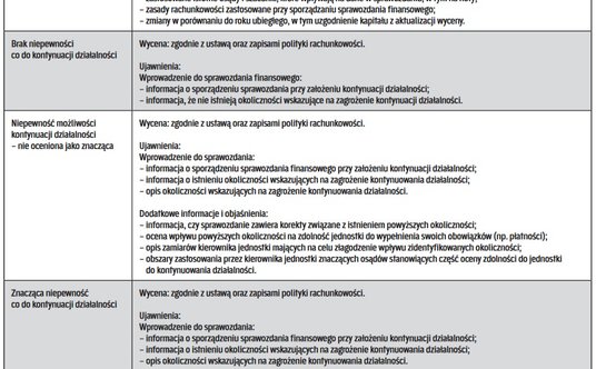 - sprawdzić, czy istnieje znacząca niepewność dotycząca kontynuacji działalności.