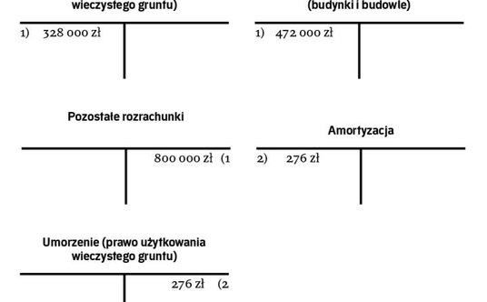 Ujęcie zakupu prawa użytkowania wieczystego gruntu i posadowionego na nim budynku w księgach rachunkowych powinno wyglądać następująco:
