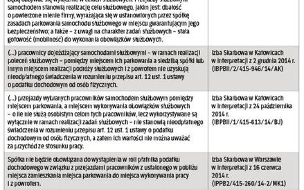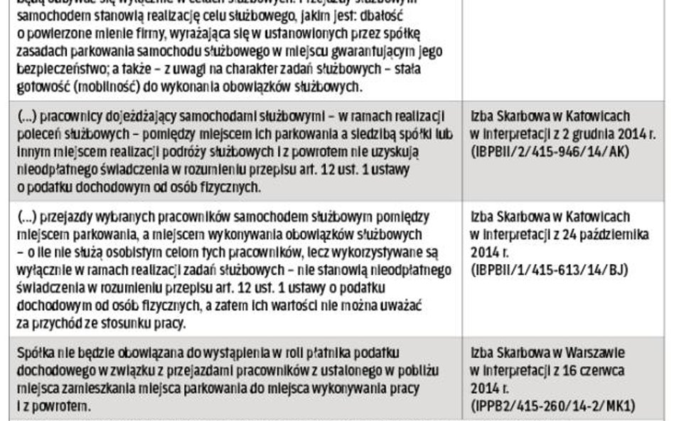 Brak możliwości zapewnienia miejsc parkingowych wystąpi, gdy pracodawca nie ma w ogóle miejsc parkingowych w pobliżu swojej siedziby, ale także gdy liczba tych miejsc jest niższa niż liczba posiadanych samochodów (tak Izba Skarbowa w Warszawie w interpretacjach z 19 maja 2010 r., IPPB2/415-168/10-2/AS i z 14 sierpnia 2012 r., IPPB2/ 415-556/12-2/AS).