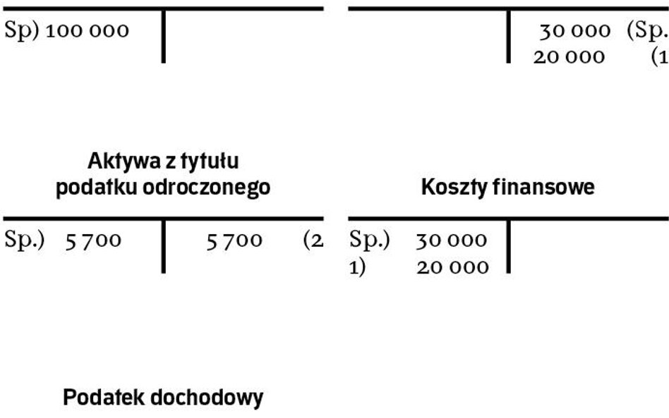 Spółka utworzyła też aktywa z tytułu podatku odroczonego w kwocie 5700 zł (30 000 zł x 19 proc.), co zostało ujęte zapisem: