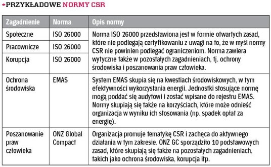 Większość norm stosowanych na świecie w zakresie CSR podchodzi do problemu całościowo i obejmuje swoim zakresem wszystkie zagadnienia wymagane do ujawnienia. Jednostka może więc z powodzeniem zapoznać się i stosować np. jedynie ISO 26000 i dostosować zakres swoich ujawnień i polityk do tego standardu. Pewnym wyzwaniem może być jednak określenie wskaźników niefinansowych powodzenia stosowanych działań, wymaga to bowiem w pierwszej kolejności dobrego rozpoznania problemów i możliwości pomiaru ich wielkości. Spółka, która nie przeprowadzała analizy w okresach wcześniejszych, nie posiada obecnie danych porównawczych i nie jest w stanie w bieżącym roku określić wpływu swoich działań na społeczność lokalną i środowisko. Dlatego działania w zakresie przygotowania się do sprawozdawczości CSR wymaganej przez znowelizowaną ustawę o rachunkowości należy podjąć jak najwcześniej. Przypomnijmy, że nowe przepisy mają zastosowanie po raz pierwszy do sprawozdań sporządzonych za rok obrotowy rozpoczynający się od 1 stycznia 2017 r.