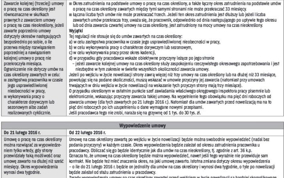 Sprowadzają się one do kilku zagadnień dotyczących zwłaszcza nowej filozofii wobec umów na czas określony >patrz tabela.
