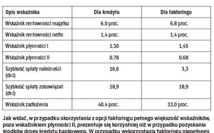 Przykład pokazał, że faktoring jest korzystny z perspektywy kształtowania się wskaźników finansowych, co nie jest bez znaczenia dla dużych jednostek, których wskaźniki są regularnie poddawane ocenie przez inwestorów lub przez inne podmioty, np. banki. Wykorzystanie tego instrumentu może oczywiście, poza pozyskaniem finansowania, przyczynić się do dodatkowych korzyści, np. zmniejszenia oprocentowania kredytu z uwagi na poprawę wskaźników finansowych.