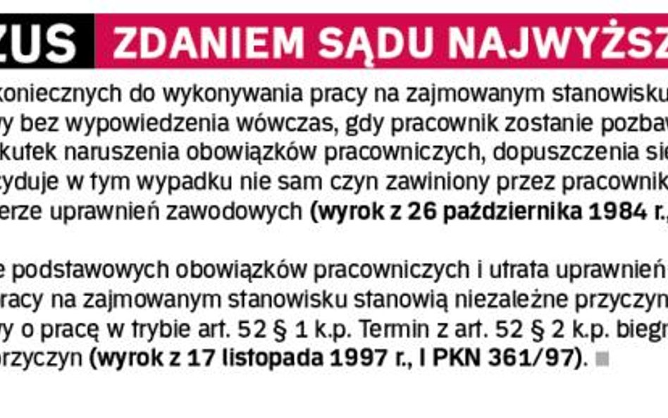 Wiele rodzajów prac czy stanowisk obok kwalifikacji czy doświadczenia zawodowego wymaga tzw. uprawnień koniecznych do realizacji zadań. Uprawnienia te powinny być aktualne zarówno przy przyjęciu do pracy, jak i przez cały okres zatrudnienia. Ich utrata oznacza konieczność opuszczenia etatu, i to często natychmiast.