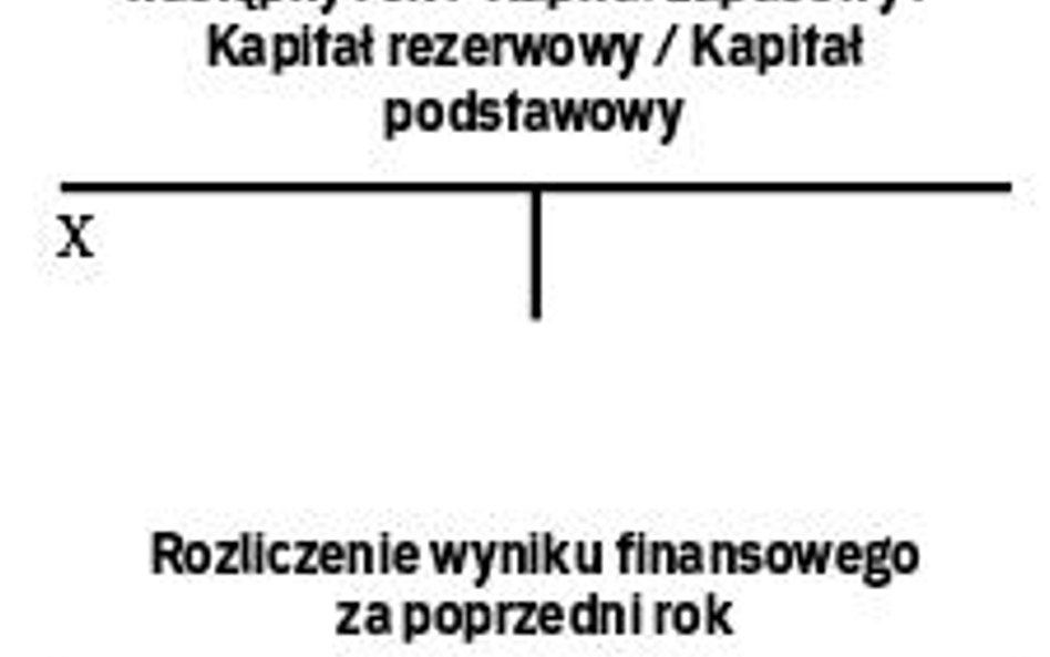 Wn „Rozliczenie wyniku finansowego za lata ubiegłe" lub „Rozliczenie wyniku finansowego za następny rok" lub „Kapitał zapasowy" lub „Kapitał rezerwowy" lub „Kapitał podstawowy";