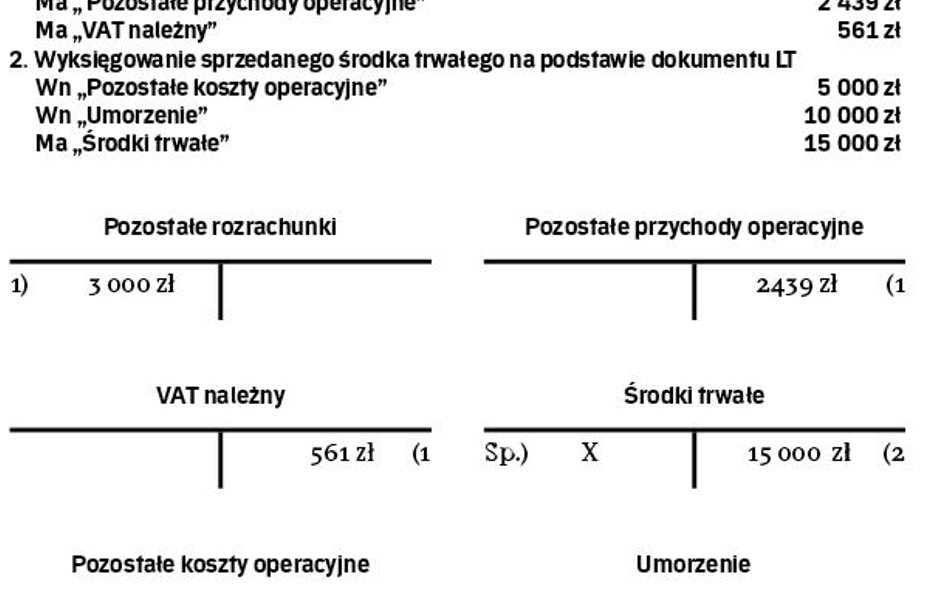 Co do zasady, jednostki gospodarcze osiągają przychody z działalności gospodarczej z tytułu sprzedaży towarów albo świadczenia usług. Zdarza się jednak, że przychody są osiągane również w wyniku zbycia składników firmowego majątku. Najczęściej taka sytuacja ma miejsce, gdy środek trwały przestał być jednostce potrzebny, ale można go sprzedać odzyskując część jego wartości. Ustawa o rachunkowości (dalej: uor) nie podaje szczegółowych wytycznych dotyczących ujęcia w księgach rachunkowych tego rodzaju transakcji. W razie wątpliwości warto sięgnąć po Krajowy Standard Rachunkowości nr 11 „Środki trwałe". KSR 11 definiuje rozchód środka trwałego jako wszelkie czynności (faktyczne i prawne) skutkujące zaprzestaniem ujmowania środka trwałego w księgach rachunkowych jednostki, w tym w szczególności między innymi na skutek sprzedaży. W tym momencie jednostka gospodarcza zaprzestaje ujmowania środka trwałego w księgach rachunkowych. Z chwilą rozchodu następuje również zakończenie jego amortyzacji, wyłączenie z ewidencji środków trwałych i kasacja numeru inwentarzowego. Wartość księgowa netto rozchodowanego środka trwałego obciąża (z pewnymi wyjątkami) bieżący wynik finansowy. Zaprzestanie ujmowania środka trwałego następuje pod datą jego sprzedaży lub nieodpłatnego przekazania.