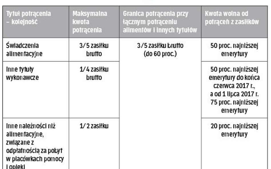 Do 30 czerwca 2017 r. w przypadku egzekucji z zasiłków kwotą wolną od potrąceń była kwota zasiłku w części odpowiadającej: