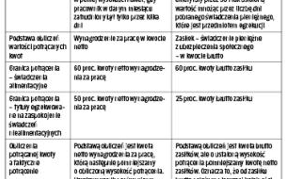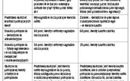 Podobieństwa i różnice pomiędzy potrąceniami z wynagrodzenia i zasiłków przedstawia tabela nr 1.