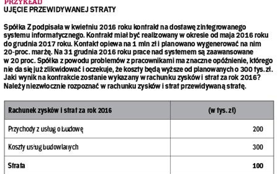 Jeśli na dzień bilansowy przewidujemy, że kontrakt wygeneruje stratę, należy ją bezwzględnie natychmiast ująć w rachunku zysków i strat.