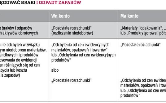 Towary handlowe, które na skutek uszkodzenia, zniszczenia podczas transportu lub magazynowania utraciły częściowo swoją pierwotną wartość, a także wyroby własnej produkcji, całkowicie wykończone lub doprowadzone do określonej fazy produkcji, które nie odpowiadają wymaganiom technicznym, zaliczane są do braków. Z kolei, materiały, które wskutek procesów technologicznych, zniszczenia lub uszkodzenia utraciły całkowicie swoją pierwotną wartość użytkową, należą do odpadów. Przy czym trwała utrata wartości danego składnika rzeczowych aktywów obrotowych, zachodząca w przypadku wysokiego prawdopodobieństwa, że składnik taki nie przyniesie w przyszłości przewidywanych korzyści ekonomicznych, uzasadnia dokonanie odpisu aktualizującego, doprowadzającego jego wartość wynikającą z ksiąg rachunkowych do ceny sprzedaży netto (wartości godziwej) (art. 28 ust. 7 uor).