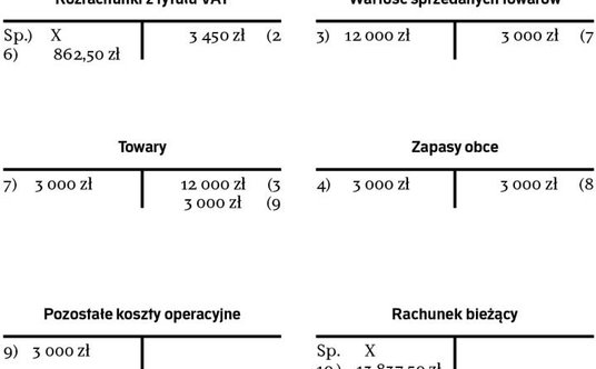 Ma „Wartość sprzedanych towarów" 3000 zł