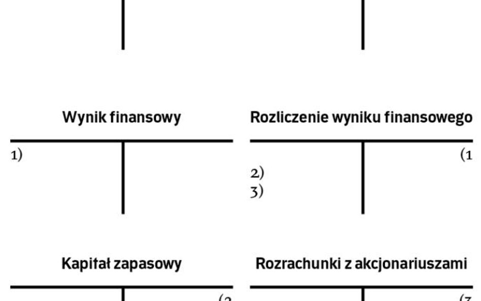 Operacje związane z przekazaniem 8 proc. zysku na kapitał zapasowy oraz wypłaty dywidendy w spółce akcyjnej mogą być ewidencjonowane według następującego schematu: