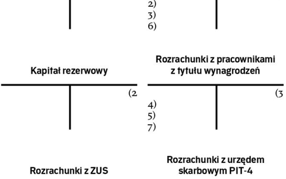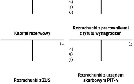 Schemat obok przedstawia ujęcie księgowe przeznaczenia zysku netto na nagrody dla pracowników oraz na kapitał rezerwowy.