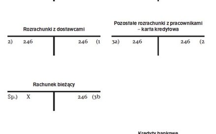 Pracownik zakupił artykuły biurowe do firmy o wartości netto 200 zł plus 46 zł VAT. Zapłacił za zakupy firmową kartą kredytową.