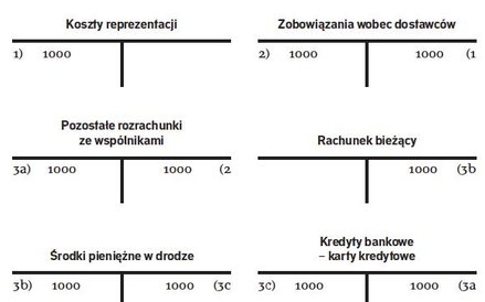 Wspólnik spółki korzysta z karty kredytowej przy transakcjach zakupu. Ponoszone przez niego wydatki dotyczą spotkań z kontrahentami i są związane z reprezentacją. Wspólnik przedstawił do rozliczenia za maj faktury na kwotę 1000 zł.