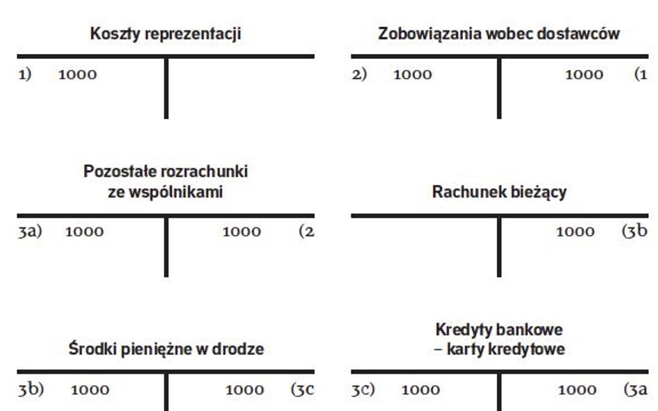 Może się zdarzyć, że wspólnik czy pracownik pokryje prywatne wydatki firmową kartą kredytową. Wtedy taki wydatek należy przeksięgować na rozrachunki ze wspólnikiem lub pracownikiem. Powinni oni rozliczyć się z tej kwoty z firmą.
