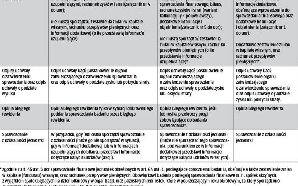 Podmioty prowadzące księgi rachunkowe zgodnie z ustawą o rachunkowości (uor) oraz podmioty, które samodzielnie wybrały sposób ewidencjonowania w postaci pełnych ksiąg, są zobowiązane do sporządzenia sprawozdania finansowego. Są to między innymi spółki handlowe – zarówno osobowe (np. spółka jawna, spółka komandytowa, spółka partnerska), jak i kapitałowe (spółka z o.o. oraz spółka akcyjna, w tym również w organizacji), a także inne osoby prawne. W przypadku osób fizycznych, spółek cywilnych osób fizycznych, spółek jawnych osób fizycznych oraz spółek partnerskich, prowadzenie ksiąg rachunkowych i tym samym sporządzenie sprawozdania finansowego jest obowiązkowe, jeżeli ich przychody netto ze sprzedaży za poprzedni rok obrotowy wyniosły co najmniej równowartość w walucie polskiej 2 000 000 euro. Wyrażony w euro limit przelicza się na walutę polską według średniego kursu euro ogłaszanego przez Narodowy Bank Polski na pierwszy dzień roboczy października roku poprzedzającego rok podatkowy. Dla roku 2017 jest to kwota 8 595 200 zł, dla roku 2018: 8 627 400 zł.