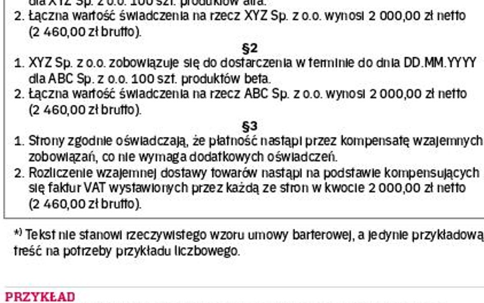 W praktyce gospodarczej zdarza się, że zamiast sprzedaży lub zakupu konkretnych dóbr albo usług podmioty gospodarcze wymieniają się towarami bądź usługami, uzgadniając wcześniej ich wartość w ten sposób, aby bilans był zerowy. Tego rodzaju wzajemna wymiana określana jest terminem barteru i nie jest szczegółowo regulowana przez żadne przepisy prawa. Zgodnie z kodeksem cywilnym ( dalej: k.c.) należy zatem do katalogu umów nienazwanych, ale zawiera podobieństwa do opisanej w k.c. umowy zamiany. Przez umowę zamiany każda ze stron zobowiązuje się przenieść na drugą stronę własność rzeczy w zamian za zobowiązanie się do przeniesienia własności innej rzeczy i stosuje się do niej przepisy o sprzedaży. Można wyróżnić trzy podstawowe cechy umowy barterowej: