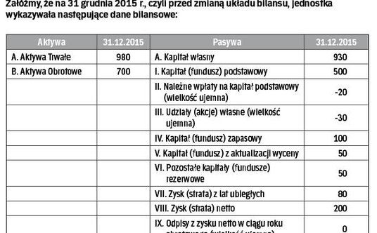 Zmiana ta ma fundamentalne znaczenie dla określania kapitału własnego i majątku jednostki. Przesunięcie tych pozycji do aktywów nadaje im cechy majątku spółki, a co za tym idzie, wpływa na zwiększenie sumy bilansowej – z pasywów znikają dwie ujemne wartości i pojawiają się w aktywach jako dodatnie pozycje.