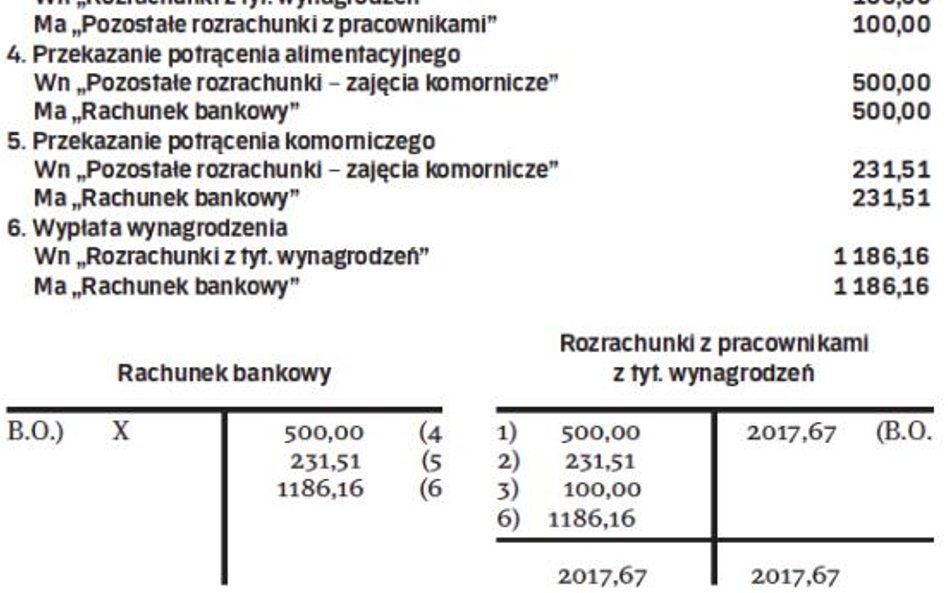 Aby móc kontrolować stan rozliczeń wynikających z tytułów egzekucyjnych obciążających wynagrodzenie pracownika, należy wyodrębnić analitykę do konta „Pozostałe rozrachunki", służącą ewidencji zajęć komorniczych.