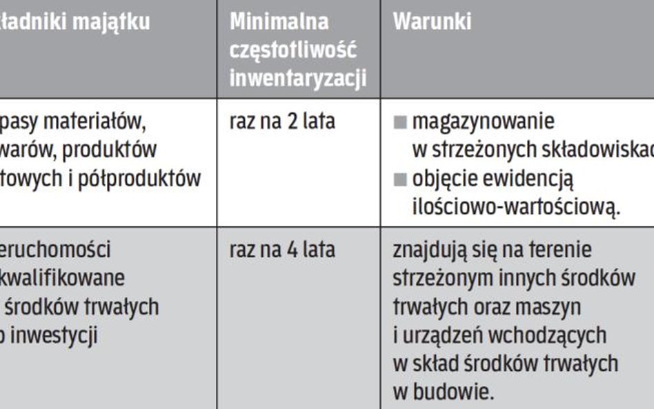 Po drugie, każda jednostka zobowiązana jest do zachowania częstotliwości przeprowadzania inwentaryzacji w stosunku do określonych grup aktywów i pasywów. W ustawie o rachunkowości (dalej: uor) wskazano grupy, dla których inwentaryzacja może być przeprowadzana rzadziej niż raz na rok obrotowy. Jednak zawsze wiąże się to z dodatkowymi obostrzeniami dotyczącymi miejsca, w którym aktywa są przechowywane, czy sposobu ich ewidencjonowania.