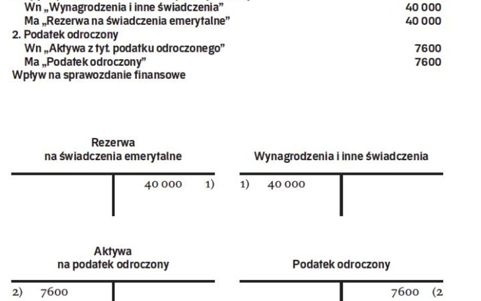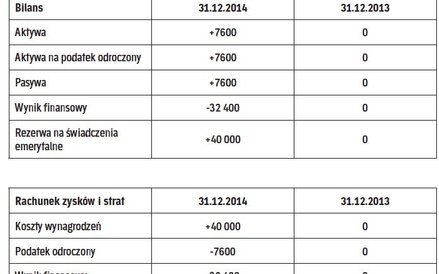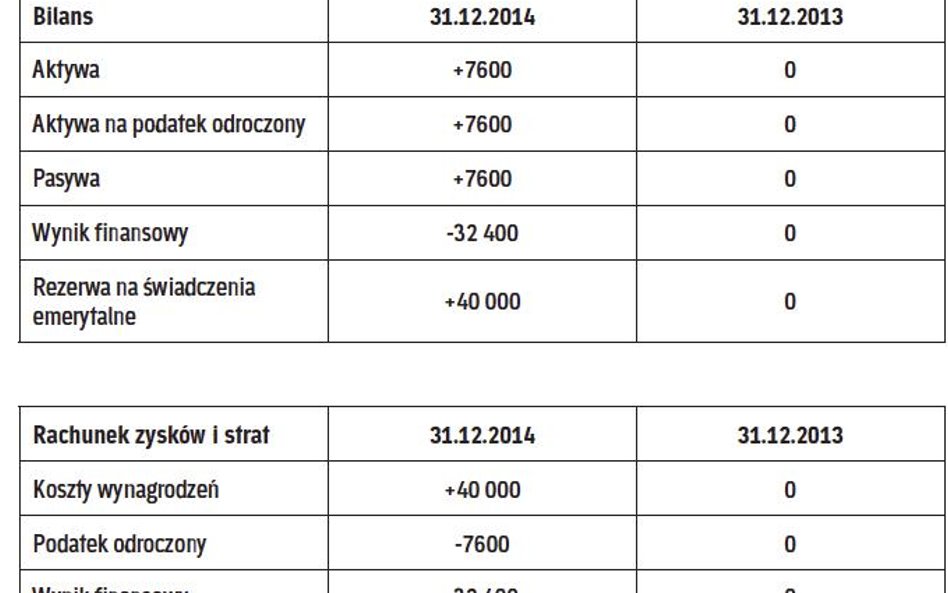 Jeżeli spółka wykazuje w sprawozdaniu finansowym podatek odroczony, to zmiana szacunku dotycząca rezerwy emerytalnej wpłynie na zmianę jego wartości wykazanej w rachunku zysków i strat, a także wartości aktywa z tytułu podatku odroczonego.