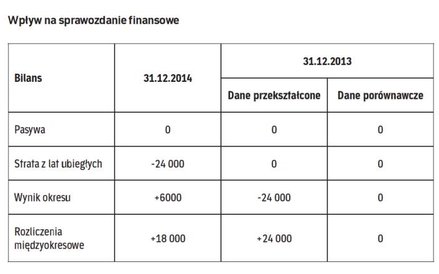 Wpływ na sprawozdanie finansowe - zobacz tabela 7 i 8
