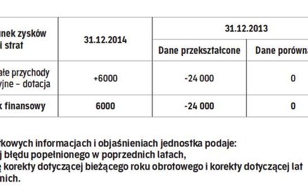 Niewykazanie dotacji na środek trwały w pozycji „Rozliczenia międzyokresowe przychodów" oznacza niezastosowanie się do art. 41 ustawy o rachunkowości (uor). Przepis ten obliguje jednostki gospodarcze do zawieszania przychodów z tytułu dotacji w tej właśnie pozycji bilansowej i późniejsze rozliczanie jej proporcjonalnie do odpisów amortyzacyjnych od środka trwałego. Błąd ten wystąpił w 2013 r., a został wykryty dopiero po zatwierdzeniu sprawozdania za ten rok. Ponieważ rok obrotowy spółki pokrywa się z rokiem kalendarzowym, to jej sprawozdanie finansowe za 2013 r. powinno być zatwierdzone do 30 czerwca 2014 r. W związku z tym, że księgi za 2013 r. są już zamknięte, powstaje pytanie, jak odnieść się w sprawozdaniu finansowym za 2014 r. do popełnionego błędu w latach wcześniejszych.