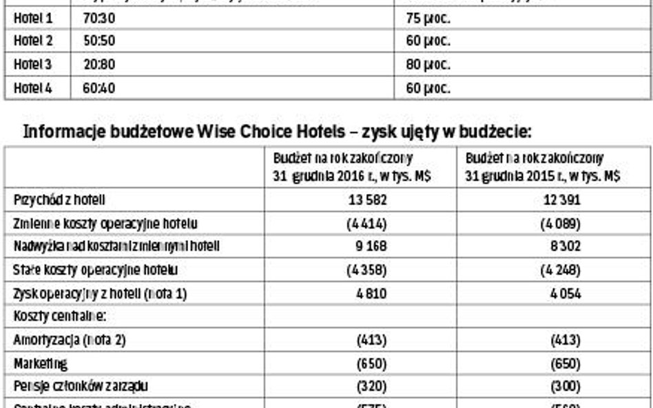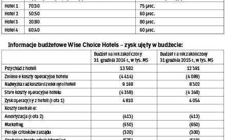 Wise Choice Hotels to rodzinna firma, która obecnie prowadzi cztery hotele w Macland, kraju o dojrzałej gospodarce i ciepłym klimacie. Walutą Macland jest M$.