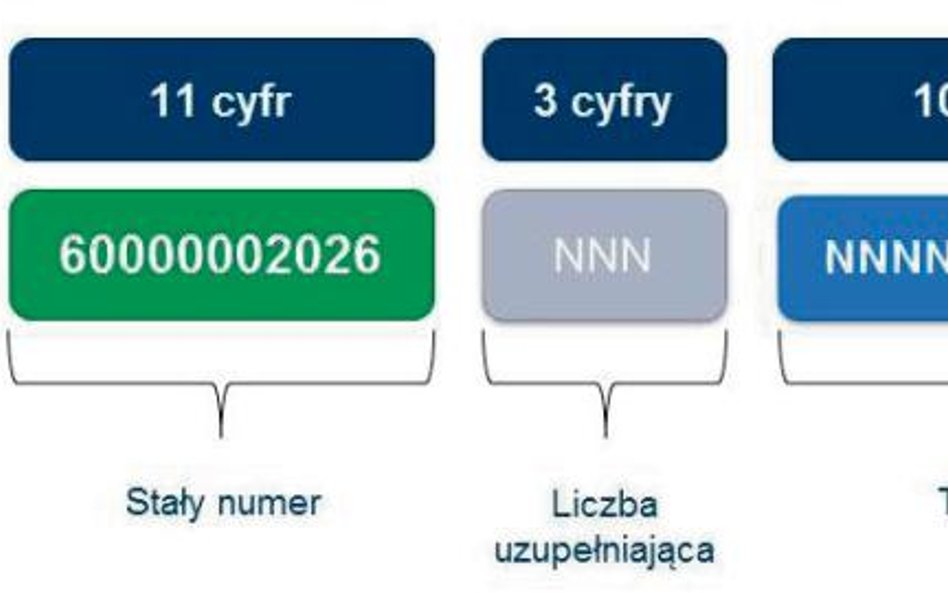 Pierwsze dwie cyfry nowego konta to liczba kontrolna rachunku bankowego. Kolejnych 11 cyfr to zakodowany identyfikator ZUS (60000002 026), a ostatnich 13 cyfr to kod identyfikujący płatnika składek, z czego 3 cyfry będą oznaczały zakres numerów deklaracji, a 10 cyfr na końcu numeru rachunku to NIP płatnika.