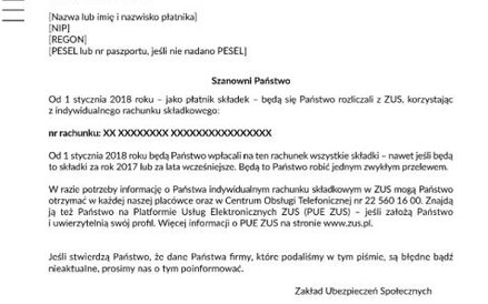 Warto się upewnić, czy przesyłka z numerem rachunku NRS, która powinna nadejść do każdego płatnika po 1 października, nie później jednak niż do 31 grudnia 2017 r., pochodzi na pewno z ZUS (wzór pisma publikujemy obok).