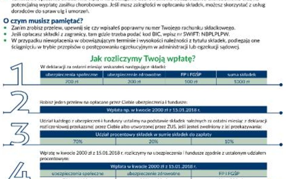 Po zmianach, aby wpłata została zaksięgowana, nie będzie już musiała zawierać danych identyfikacyjnych płatnika – dokładnie takich, z jakimi zarejestrował się w ZUS – obejmujących: nazwę lub imię i nazwisko płatnika, jego NIP, REGON, a w razie jego braku numer PESEL lub dowodu osobistego czy paszportu płatnika. Nie trzeba będzie też wskazywać typu wpłaty, numeru deklaracji, miesiąca i roku, za który dokonywana jest wpłata, oraz numeru umowy lub tytułu wykonawczego. Wszystkie te szczegółowe informacje podawane na przelewie decydowały o tym, czy składki trafiły na odpowiednie konto każdego z 16 mln ubezpieczonych obecnie w ZUS.