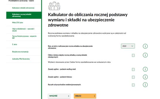 Kalkulator umożliwia wyliczenie rocznej podstawy wymiaru i składki: