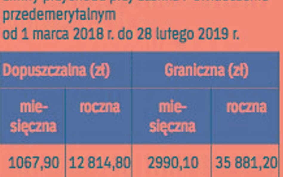 Rok rozliczeniowy w tym przypadku nie jest tożsamy z kalendarzowym. Osoby pobierające zasiłek/świadczenie przedemerytalne corocznie muszą się rozliczyć z zarobków osiągniętych w ciągu 12 miesięcy przypadających od 1 marca poprzedniego roku do końca lutego roku bieżącego.